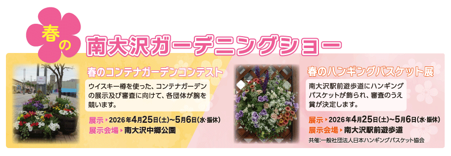 - 春のハンギングバスケット展 展示期間:4/25(土)~5/6(水・振休)